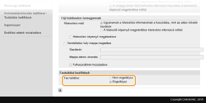 A fax funkciót engedélyezheti vagy tilthatja. Válassza az igényeinek megfelelő beállítást.