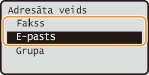 Izvēlieties <Faksa numurs> vai <E-pasta adrese> un nospiediet