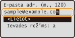 Atbilstoši LDAP serverī reģistrētajam saturam LDAP serverī reģistrētā norādītā adresāta lietotājvārds un faksa numurs/e-pasta adrese tiks automātiski ievadīta.