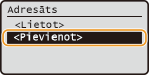 Atkārtojiet 10. un 11. darbību, līdz ir reģistrēti visi vajadzīgie adresāti, izvēlieties <Lietot> un pēc tam nospiediet