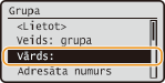 Iestatījuma <Nosaukums> reģistrēšana nav obligāta. Ja reģistrējat <Nosaukums>, adresātu var meklēt pēc alfabēta.