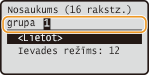 Ievadiet grupas nosaukumu, izmantojot ciparu taustiņus, izvēlieties <Lietot> un nospiediet