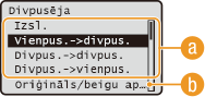 Varat norādīt divpusējās kopēšanas iestatījumu, nospiežot