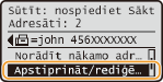 Izvēlieties <Apstiprināt/rediģēt adresātu> un nospiediet