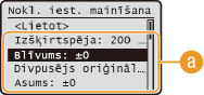 Izvēlieties vienumu, kas ir jāiestata, un mainiet noklusējuma vērtību.