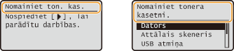 Parādītais ziņojums mainās atkarībā no atlikušā tonera daudzuma. Atkarībā no parādītā ziņojuma ir jāsagatavo rezerves tonera kasetne vai jānomaina tonera kasetne.
