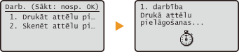 Iekārta sāks skenēt pielāgošanas attēlu. Pēc aptuveni 15 sekundēm pielāgošana ir pabeigta.