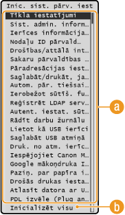 Iestatījumu izvēlnes saraksts). Lai pabeigtu dažu iestatījumu inicializāciju, nepieciešama iekārtas restartēšana.
