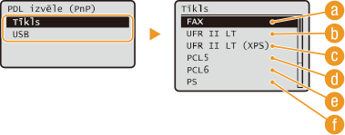 Izvēlieties <Tīkls> vai <USB>