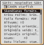 Ja tiek parādīts <Sūtīšana sev>, varat izvēlēties šo vienumu, lai sūtītu failu uz sev piešķirto mapi. Plašāku informāciju par iestatījuem, kas nosaka failu sūtīšanu uz noteiktām mapēm, skatiet sadaļā