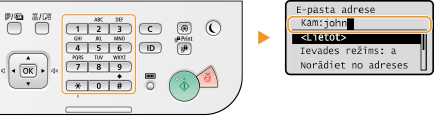 Izmantojiet darbības paneļa ciparu taustiņus, lai norādītu adresātus.