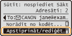 Izvēlieties <Apstiprināt/rediģēt adresātu> un nospiediet