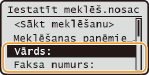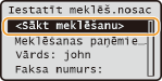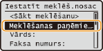 Lai meklētu adresātus, varat izmantot tādus kritērijus kā personvārds, faksa numurs, e-pasta adrese, uzņēmuma nosaukums un nodaļas nosaukums.