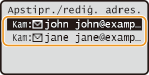 Ja esat jau norādījis adresātu, izmantojot cipartastatūru, līdz deviņiem adresātiem var norādīt, izmantojot LDAP serveri.
