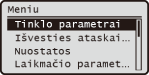 , rodomas ekranas <Meniu>. Šiame ekrane galite pradėti nustatinėti bendruosius aparato parametrus, pvz., <Bendrieji parametrai> arba <Laikmačio parametrai>, taip pat daug kiekvienos funkcijos (pvz., kopijavimo ir nuskaitymo) parametrų.