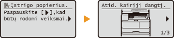 Pranešimai ekrano viršuje rodomi, pavyzdžiui, kai baigiasi popierius arba lieka mažai dažomųjų miltelių. Ekrane pakaitomis rodomas įprastas ekranas ir pranešimas.