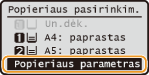 pasirinkite <Popieriaus parametrai> ir paspauskite