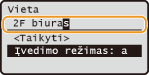 . Be to, jei ekrano viršutiniame kairiajame kampe rodoma skaičiaus mygtuko piktograma, reikšmę galite įvesti tiesiogiai naudodami skaičių mygtukus. Teksto įvedimas