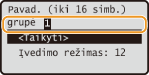 Įveskite grupės pavadinimą naudodami skaičių mygtukus, pasirinkite <Taikyti> ir paspauskite