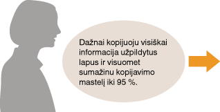 Pakeiskite kopijavimo mastelį į 95 % ir užregistruokite jį kaip numatytąjį parametrą. Nuo šiol kopijuojant nebereikės keisti kopijavimo mastelio. Numatytieji kopijavimo parametrai