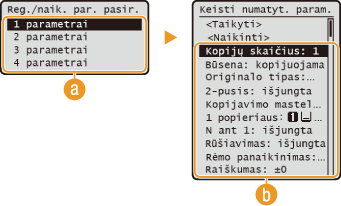 Konfigūruokite dažnai naudojamus parametrus. Įvairūs kopijavimo parametrai
