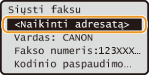 Naudojant adresų knygelę galima nurodyti adresatą pasirenkant iš užregistruotų adresatų sąrašo arba ieškant adresato vardo pagal gavėjų vardus. Galite tiesiogiai nurodyti adresatą spustelėdami vieno spustelėjimo mygtuką arba įvesdami adresatui priskirtą trijų skaitmenų numerį (kodinio rinkimo numerį).