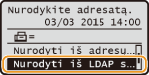 Jei biure yra įdiegtas LDAP serveris, galite naudoti serveryje užregistruotus adresatus. Norėdami nurodyti adresatus, aparatu pasiekite LDAP serverį ir ieškokite adresato.