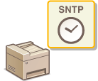 Paprastas tinklo laiko protokolas (SNTP) leidžia koreguoti sistemos laikrodį naudojant tinkle esantį laiko serverį. Paprastai šis protokolas naudojamas aparatui su serveriu sinchronizuoti, pvz., kai aparatui reikia pasiekti LDAP serverį su įjungtu saugos autentifikavimu. Laikas koreguojamas pagal pasaulinį koordinuotąjį laiką (UTC), todėl prieš konfigūruodami SNTP nurodykite laiko juostą (Datos / laiko parametrai). SNTP parametrus galima nurodyti naudojant priemonę „Remote UI“ (Nuotolinio vartotojo sąsaja).