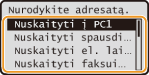 Pasirinkite adresatą arba nuskaitymo tipą ir paspauskite