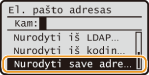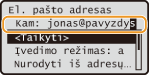 .Adresų knygelės naudojimo instrukcijų žr. skyriuje Nurodymas iš adresų knygelės (el. paštas / failo serveris).