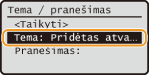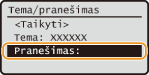 Pasirinkite <Tema / pranešimas> ir nuspauskite