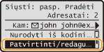 Pasirinkite <Patvirtinti / redaguoti adresatą> ir nuspauskite