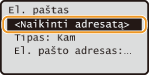 Jei biure yra įdiegtas LDAP serveris, galite naudoti serveryje užregistruotus adresatus. Norėdami nurodyti adresatus, aparatu pasiekite LDAP serverį ir ieškokite adresato.