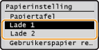 <Lade 2> wordt alleen weergegeven als de optionele papierlade (lade 2) is geïnstalleerd.