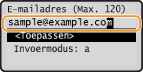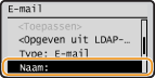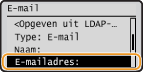 Afhankelijk van de inhoud die is opgeslagen op de LDAP-server, worden automatisch de gebruikersnaam en het faxnummer/e-mailadres van de bestemming op de LDAP-server ingevoerd.