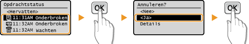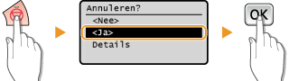 Hier ziet u het aantal kopieën, de gekozen instellingen en andere details. Als u alleen de details wilt controleren zonder het kopiëren te annuleren, drukt u op