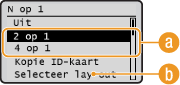 drukt, maar de randen van het document worden mogelijk niet gekopieerd als u het percentage verhoogt.<2 op 1>/<4 op 1> is niet beschikbaar als u <Rand wissen> of <ID-kaart kopie> gebruikt.