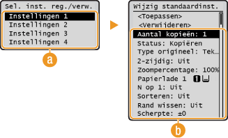 Selecteer <Instellingen 1> tot en met <Instellingen 4>