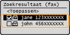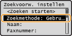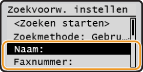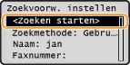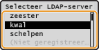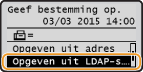 Als in uw kantooromgeving een LDAP-server is geïnstalleerd, kunt u ook bestemmingen opgeven die op die server zijn vastgelegd. Hiervoor opent u vanaf het apparaat het adresboek op een LDAP-server en zoekt u de bestemming.