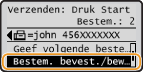 / drukken om te schakelen tussen de bestemmingen die u hebt opgegeven. Geef een bestemming weer die u wilt verwijderen <Ja> . |
