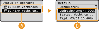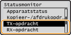 .![]() <Status TX-opdracht>/<Status RX-opdracht>Hier ziet u een lijst met de documenten die worden verzonden of ontvangen, of die wachten op verwerking.