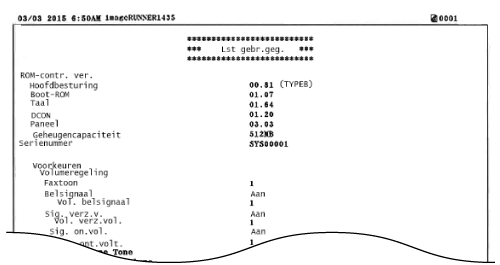 Deze lijst bevat geen gegevens over instellingen voor <Netwerkinstellingen> en <Instellingen Systeembeheer>. Als u alle instellingen wilt controleren, drukt u de lijst met systeembeheerdersgegevens af.