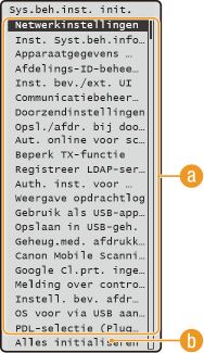 Instellingenmenu). Voor sommige instellingen moet u de machine opnieuw opstarten om de initialisatie te voltooien.
