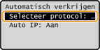 en stelt u zowel <Selecteer protocol> als <Auto IP> in op <Uit>. |