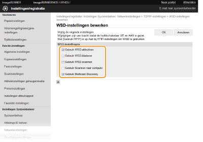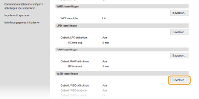 Schakel dit selectievakje in om via WSD informatie over het apparaat op te halen van een computer. Dit selectieve wordt automatisch ingeschakeld wanneer u het selectievakje [Gebruik WSD-afdrukken] inschakelt. [Gebruik WSD-scannen]