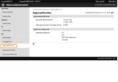 Als u een gebruikersnaam hebt ingevoerd tijdens het aanmelden in de eindgebruikersmodus, worden alleen de documenten die u afdrukt, weergegeven.
