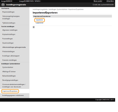 Als u bij stap 4 [Instellingen/registratie] hebt geselecteerd, start de machine automatisch opnieuw op nadat de gegevens zijn geïmporteerd.