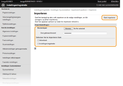 Wijzig de instellingen voor importeren en klik op [Start importeren].