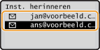 U kunt een bestemming selecteren uit de drie laatst gebruikte bestemmingen. Als u een eerder gebruikte bestemming opgeeft, worden ook de laatst gebruikte scaninstellingen, zoals de dichtheid, voor die bestemming geselecteerd.