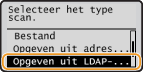 Druk op / om <Opgeven via LDAP-server> te selecteren en druk vervolgens op .